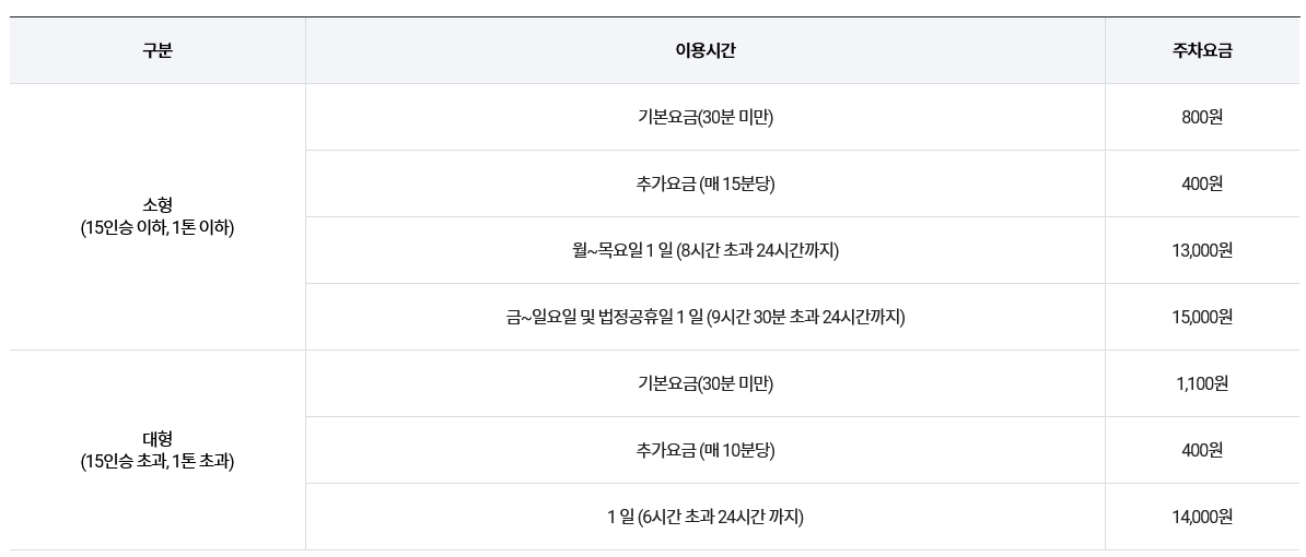 1. 대구공항 공영주차장 기본요금