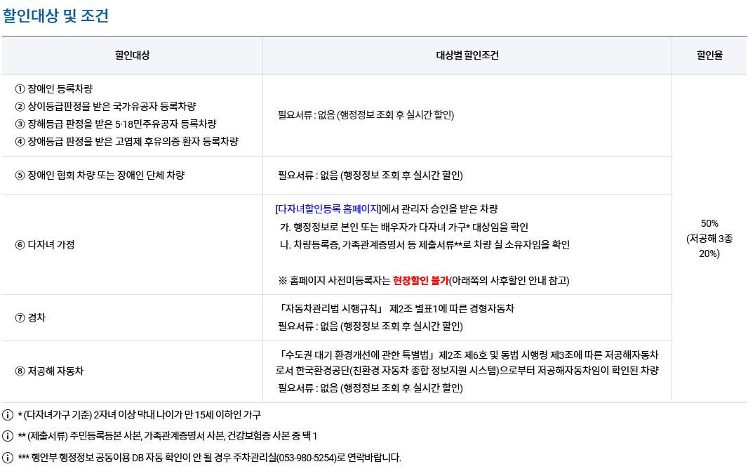 국가 유공자 등 그리고 경차는